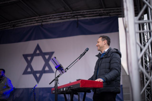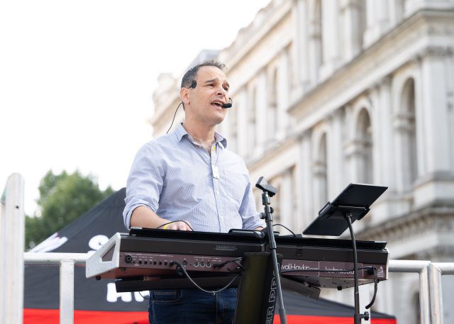Accompanying the Israeli star Miri Mesika at a rally on Trafalgar squareer